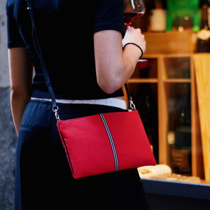- Italian vegetable tanned leather convertible shoulder strap/wristlet and piping